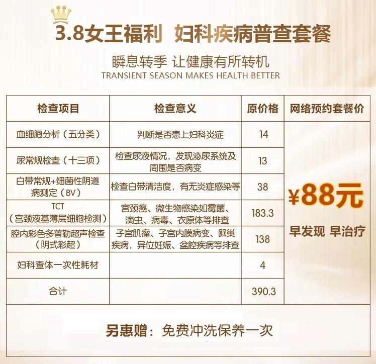 3、妇科综合治疗(波姆、红光、光浴、三氧)每治疗3次,赠送1次;