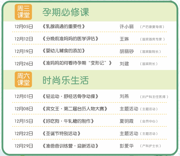 国宾HPC国际孕妇学校为即将成为妈妈的您精心设计,每次均为精品课堂,环境私密、舒适。课堂精心设计,涵盖了从生命孕育、孕期、分娩到产后的全过程,满足您孕产期的所有需要。